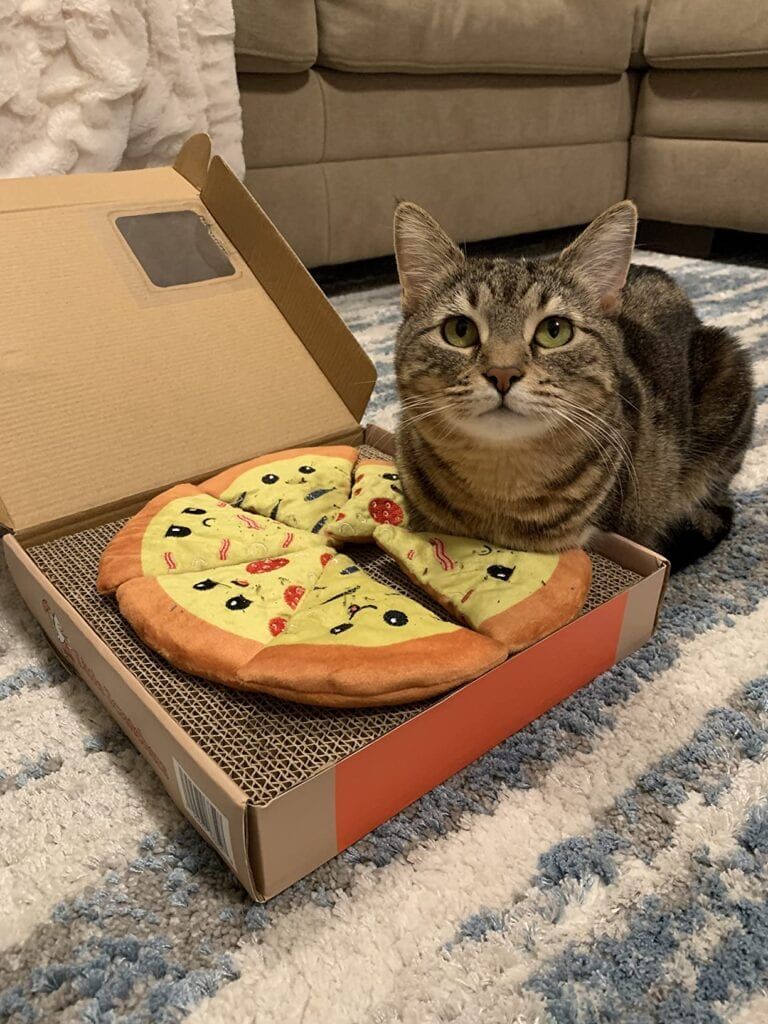 How adorable are these 2-in-1 cat scratcher pizza boxes and catnip-infused toy pizza slices? This cat toy combo is sure to put a smile on your and your fur baby’s face! It’s made with cat-friendly plush material and pesticide-free, organic catnip. The perfect gift for cats and cat lovers!