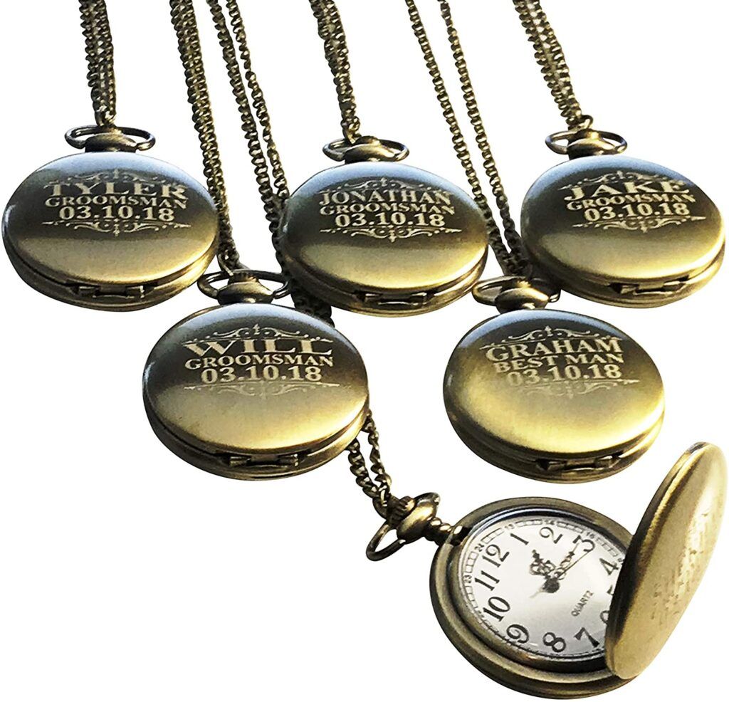 Pocket watches may belong to a generation long ago but there’s still something classic about gifting one. This set includes six watches in silver, gold, gunmetal, or rose gold and each can be personalized to the name of the recipient. Enjoy vintage styling in a new piece that also comes with the chain and a nice gift box for presentation.