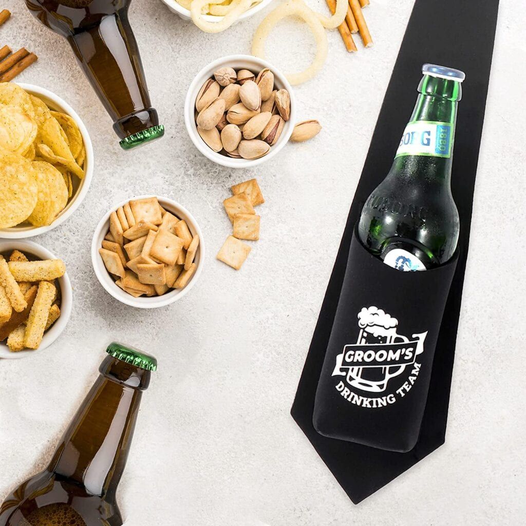 Who doesn’t love a practical gift? This necktie beer holder is likely to be the gift your wedding party can’t stop talking about. A fully-functional tie in itself, it has a neoprene pocket sized just right for their favorite brew. (They also hold regular-sized soda cans, too.) Available in a six- or 10-pack, these would make a hilarious photo for the wedding album.