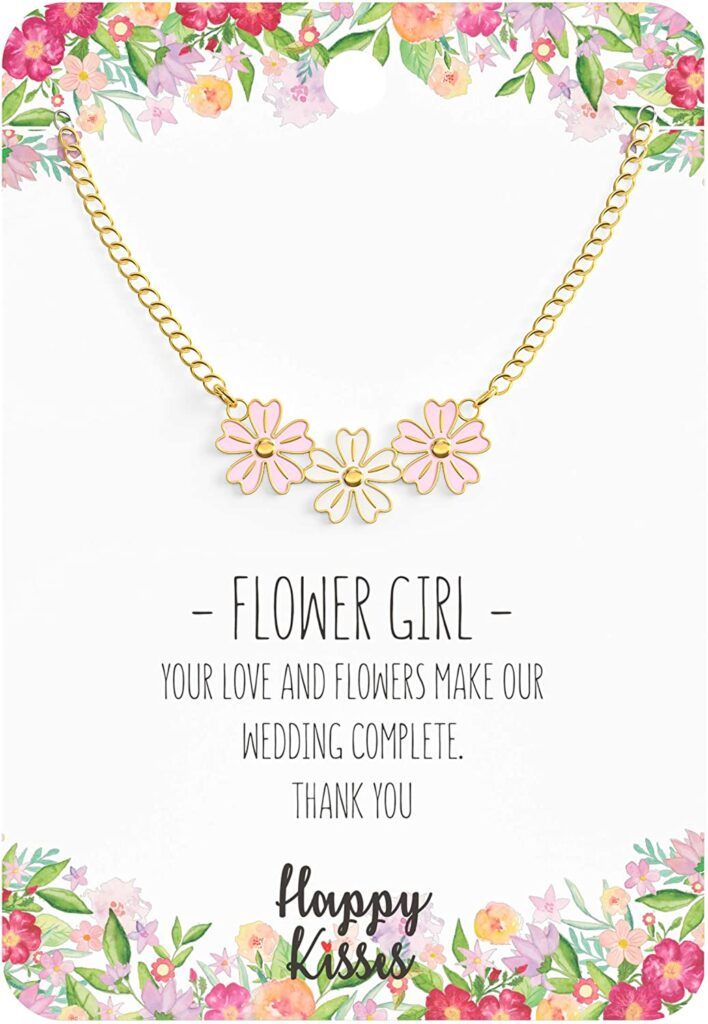 Little girls love trinkets so give her one of her own with this flower girl necklace that lets her know “your love and flowers make our wedding complete.” Available in six variations, this necklace is plated in 18K silver that’s nickel-free and hypoallergenic. And, if it breaks in the first three years, the manufacturer will replace it — no questions asked.