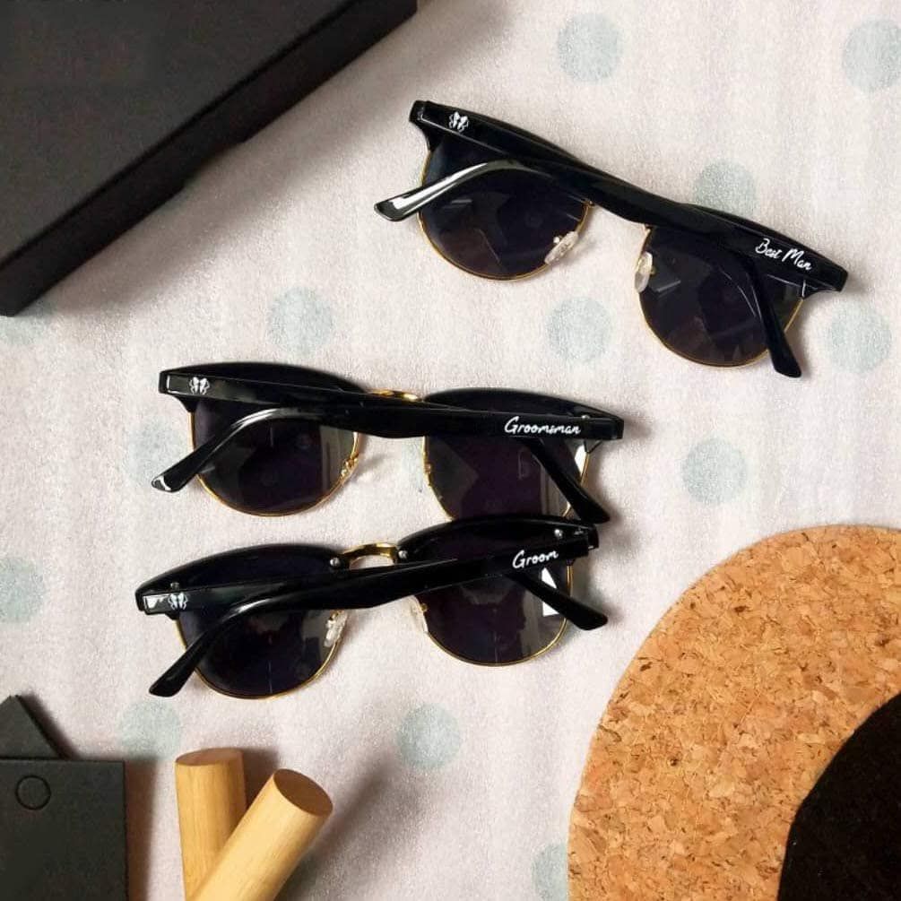 You probably have an immediate reaction (good or bad) to the idea of your groomsmen wearing sunglasses during the ceremony, but this set of themed sunglasses could make for some really cool pictures. This seven-piece set comes in several different styles, labeled with “groom” and “groomsman.” These have plastic frames and lenses with a scratch-resistant coating so they can wear them for years to come.