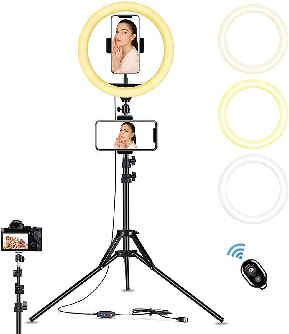 This dynamite selfie ring light extends from 13″ to 47.5″ and can be used either on your table or floor. The perfect ring light for Tiktok, Facetiming, Youtube tutorials, or just to snap a few selfies with studio-quality lighting.