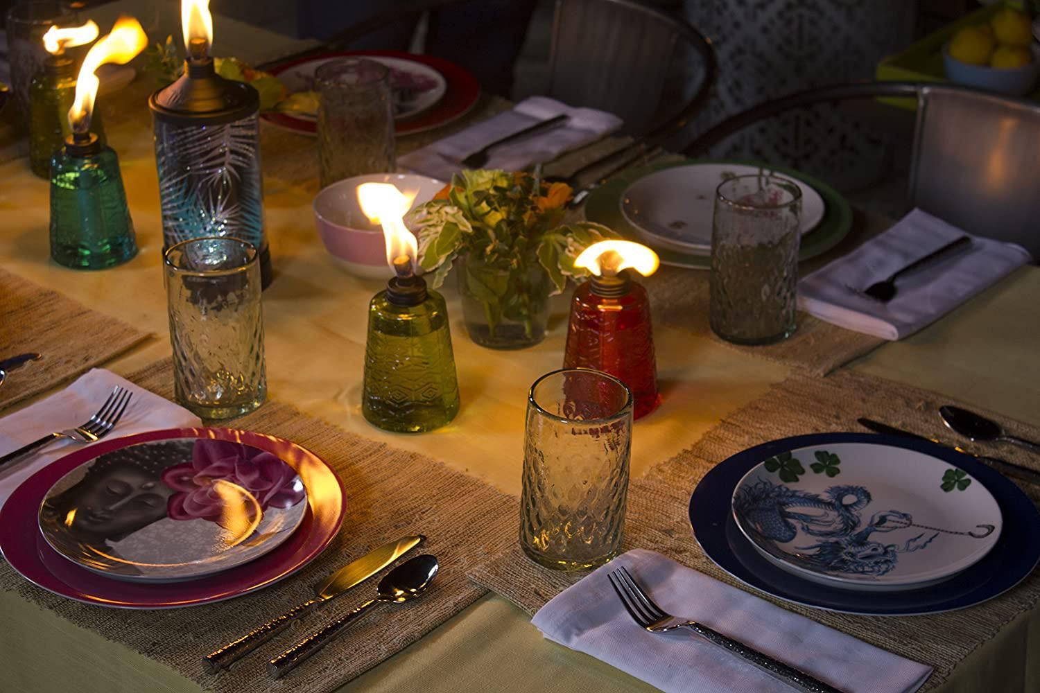 It’s time to get rid of the cheap tiki torches from Walmart, do you hear me? These six-inch molded glass table torches will give you the same amount of light but in a more grown-up type packaging. The vibrant colors and smart design go with just about any outdoor décor and offer up to five hours of burn time. Grab more than one set to deliver a really impressive light display.
